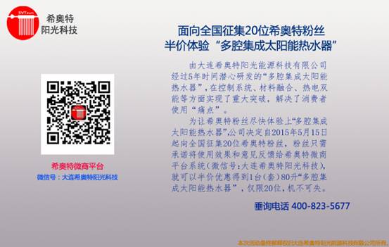 ������ϣ�W�ط۽z�M���w���“��ǻ����̫��ܟ�ˮ��”����˾�Q����2015��5��15������ȫ������20λϣ�W�ط۽z���۽zֻ����Z��ʹ��Ч������Ҋ�����oϣ�W����ƽ�_ϵ�y(t��ng)����̖�����Bϣ�W��ꖹ�Ƽ������Ϳ���r��(y��u)�ݵõ�1�_���ף�80��“��ǻ����̫��ܟ�ˮ��”���H��20λ���C����ʧ��